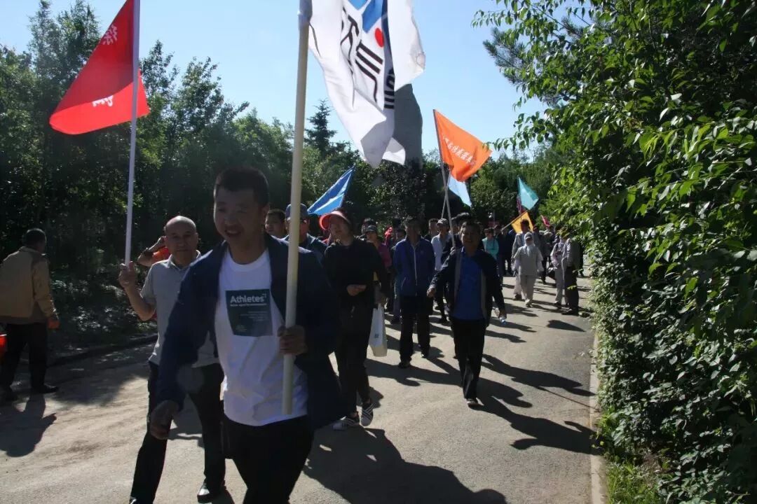 全公司组成12个方队,每方队有一面旗帜,以团队形式集体出发匀速前行。大家精神抖擞,脸上洋溢着快乐的笑容。
